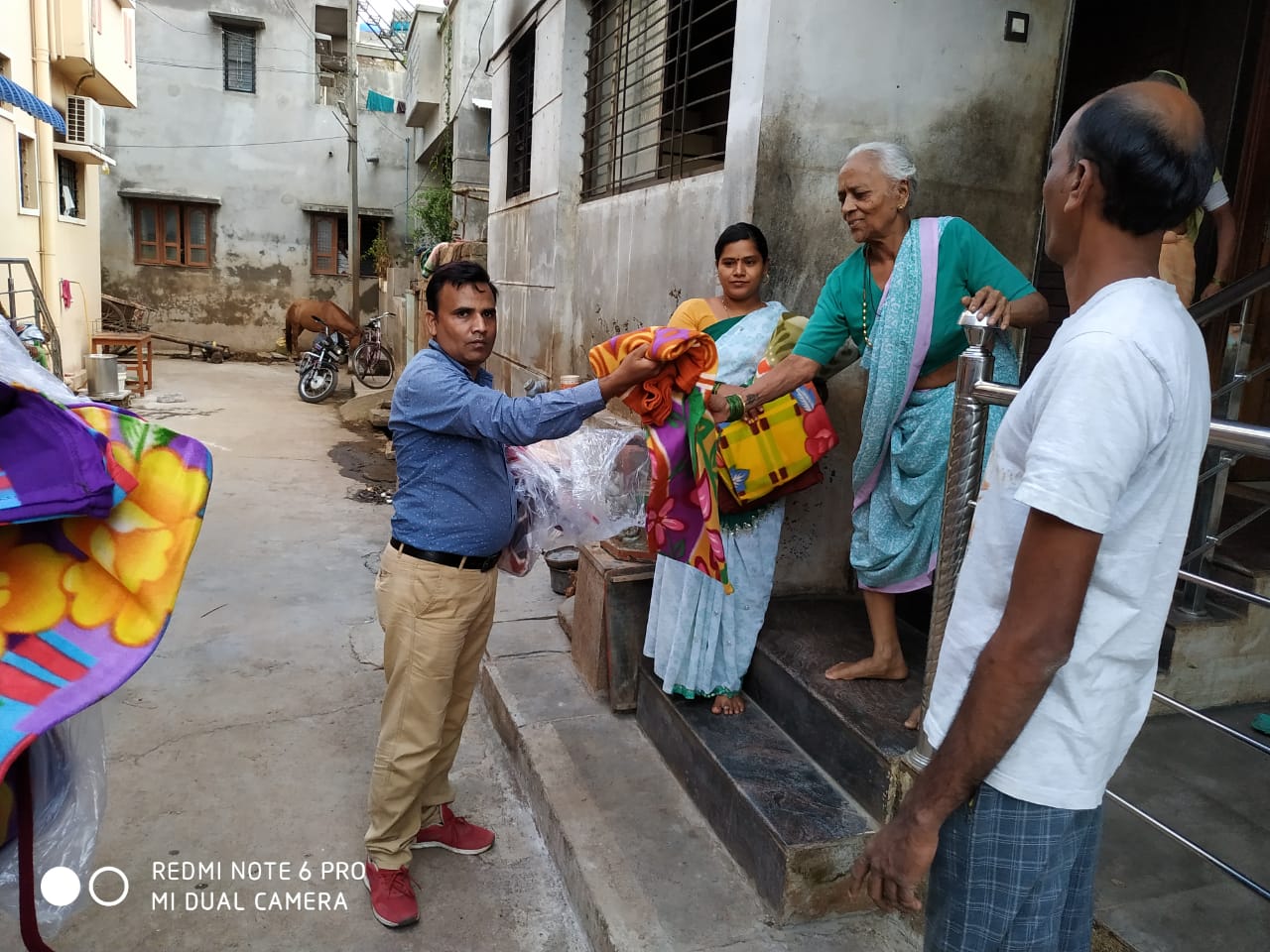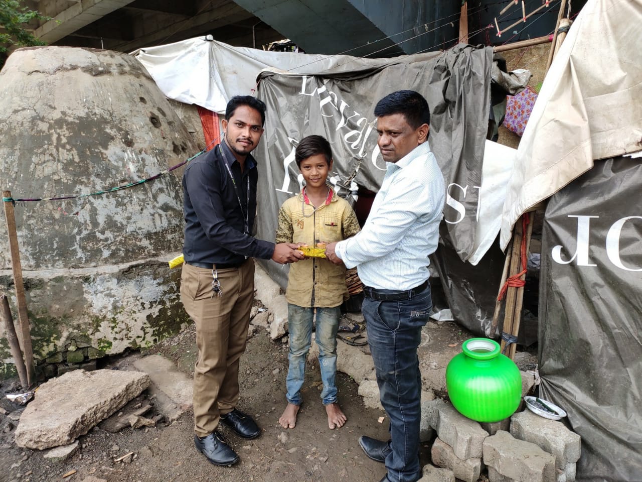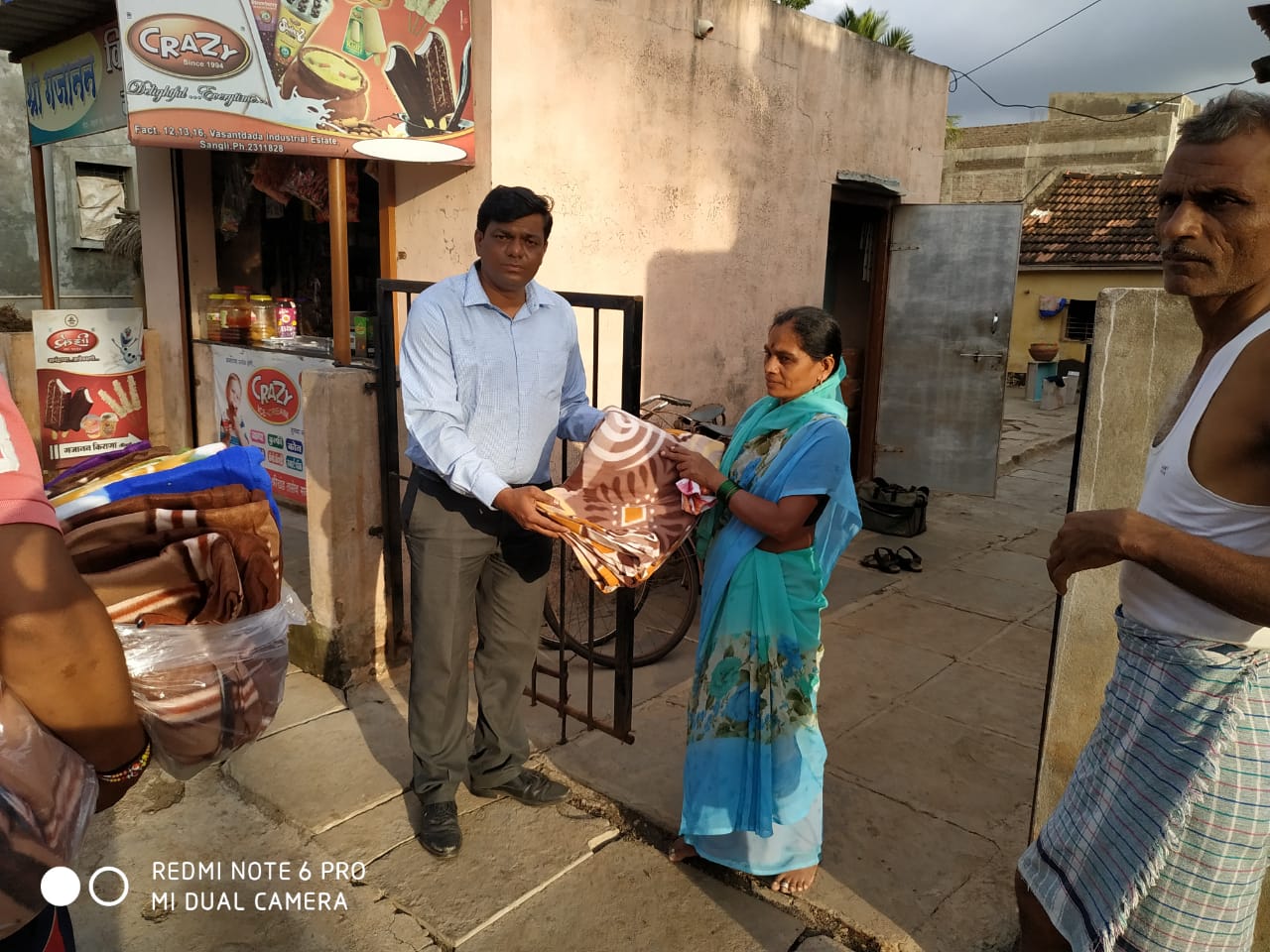 Representatives of  “Hiswish Charitable Trust” and “Khush Housing Finance Pvt Ltd” reached several villages, where no one else has reached earlier. They evenly distributed clothes and blankets among the flood affected.